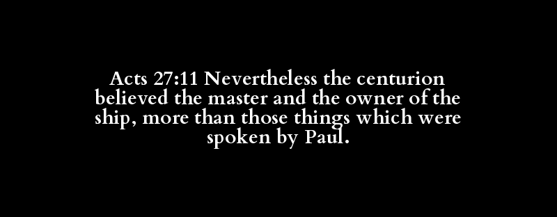 Acts 27:11 Nevertheless the centurion believed the master and the owner of the ship, more than those things which were spoken by Paul.