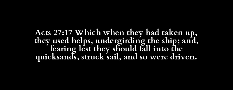 Acts 27:17 Which when they had taken up, they used helps, undergirding the ship; and, fearing lest they should fall into the quicksands, struck sail, and so were driven.