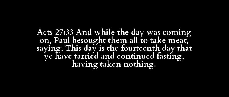 Acts 27:33 And while the day was coming on, Paul besought them all to take meat, saying, This day is the fourteenth day that ye have tarried and continued fasting, having taken nothing.