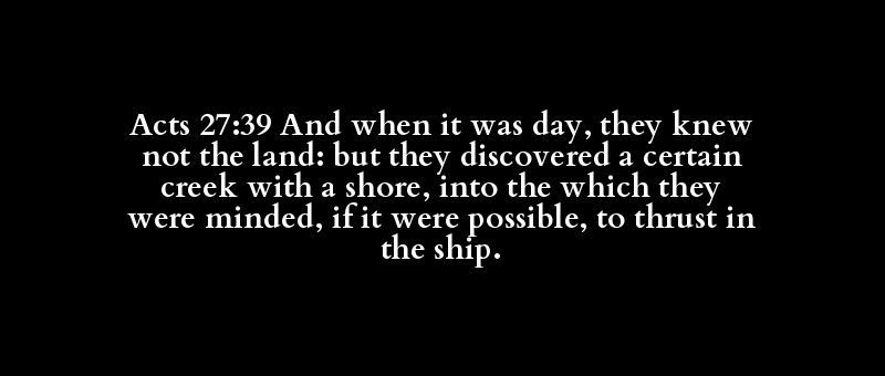Acts 27:39 And when it was day, they knew not the land: but they discovered a certain creek with a shore, into the which they were minded, if it were possible, to thrust in the ship.