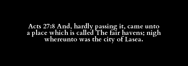 Acts 27:8 And, hardly passing it, came unto a place which is called The fair havens; nigh whereunto was the city of Lasea.