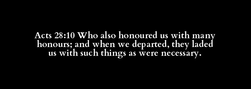 Acts 28:10 Who also honoured us with many honours; and when we departed, they laded us with such things as were necessary.