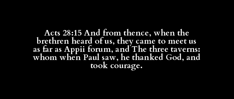 Acts 28:15 And from thence, when the brethren heard of us, they came to meet us as far as Appii forum, and The three taverns: whom when Paul saw, he thanked God, and took courage.