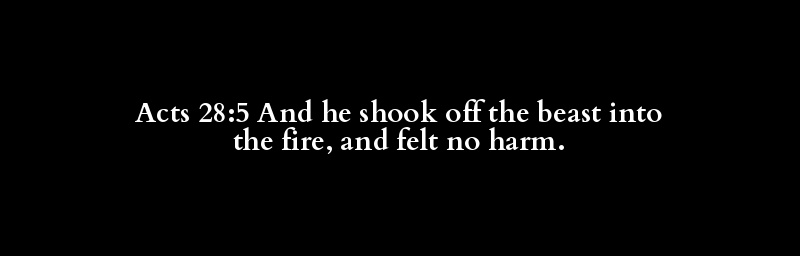 Acts 28:5 And he shook off the beast into the fire, and felt no harm.