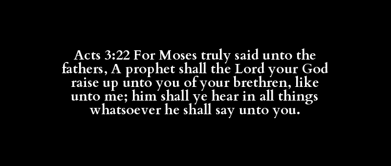Acts 3:22 For Moses truly said unto the fathers, A prophet shall the Lord your God raise up unto you of your brethren, like unto me; him shall ye hear in all things whatsoever he shall say unto you.
