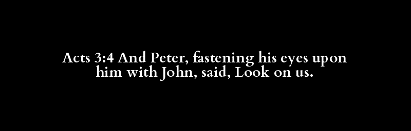 Acts 3:4 And Peter, fastening his eyes upon him with John, said, Look on us.