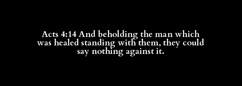 Acts 4:14 And beholding the man which was healed standing with them, they could say nothing against it.