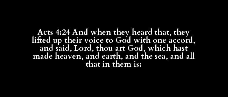 Acts 4:24 And when they heard that, they lifted up their voice to God with one accord, and said, Lord, thou art God, which hast made heaven, and earth, and the sea, and all that in them is:
