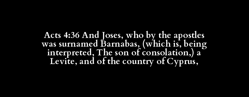 Acts 4:36 And Joses, who by the apostles was surnamed Barnabas, (which is, being interpreted, The son of consolation,) a Levite, and of the country of Cyprus,