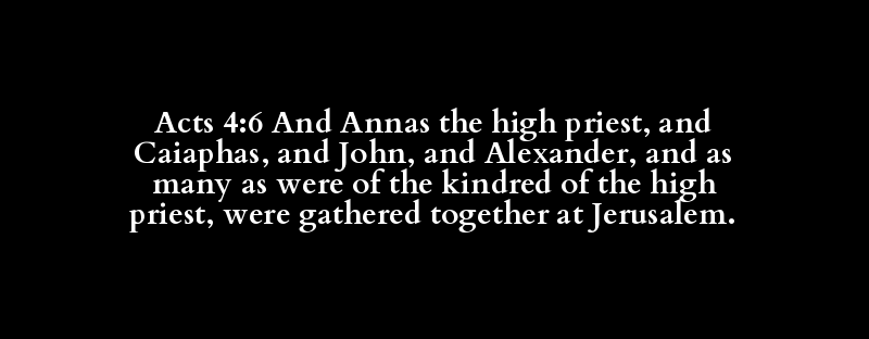 Acts 4:6 And Annas the high priest, and Caiaphas, and John, and Alexander, and as many as were of the kindred of the high priest, were gathered together at Jerusalem.