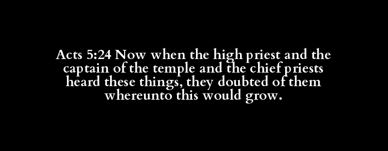 Acts 5:24 Now when the high priest and the captain of the temple and the chief priests heard these things, they doubted of them whereunto this would grow.