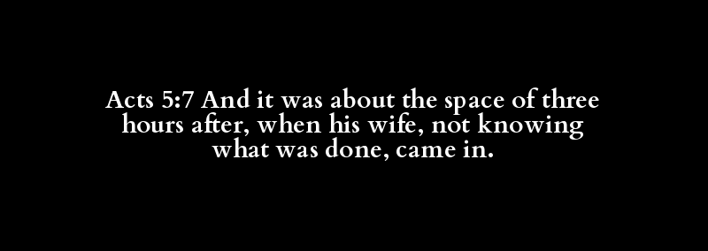 Acts 5:7 And it was about the space of three hours after, when his wife, not knowing what was done, came in.