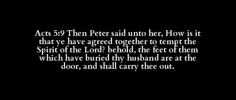 | δέ | Πέτρος | ἔπω | πρός | αὐτός | τίς | ὅτι | ὑμῖν | συμφωνέω | πειράζω | πνεῦμα | κύριος | ἰδού | πούς | θάπτω | σοῦ | ἀνήρ | ἐπί | θύρα | καί | ἐκφέρω | σέ | ἐκφέρω |