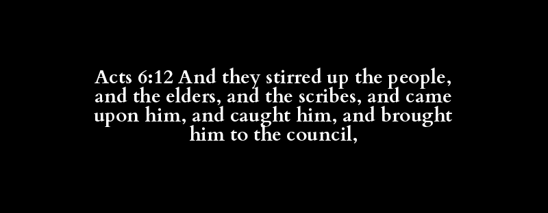 Acts 6:12 And they stirred up the people, and the elders, and the scribes, and came upon him, and caught him, and brought him to the council,