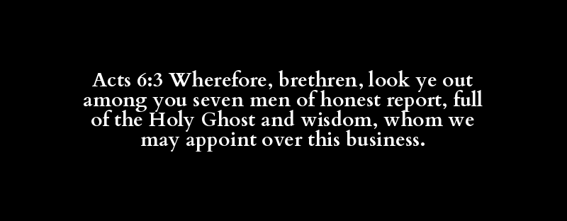 Acts 6:3 Wherefore, brethren, look ye out among you seven men of honest report, full of the Holy Ghost and wisdom, whom we may appoint over this business.