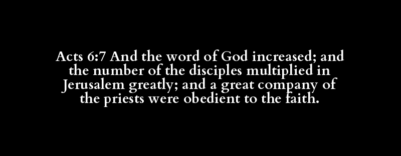 Acts 6:7 And the word of God increased; and the number of the disciples multiplied in Jerusalem greatly; and a great company of the priests were obedient to the faith.