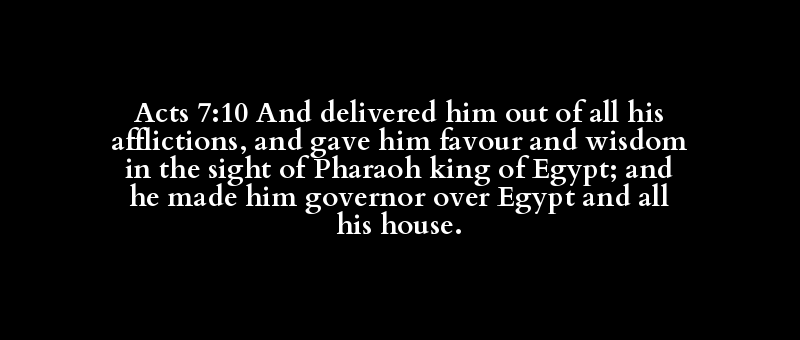 Acts 7:10 And delivered him out of all his afflictions, and gave him favour and wisdom in the sight of Pharaoh king of Egypt; and he made him governor over Egypt and all his house.