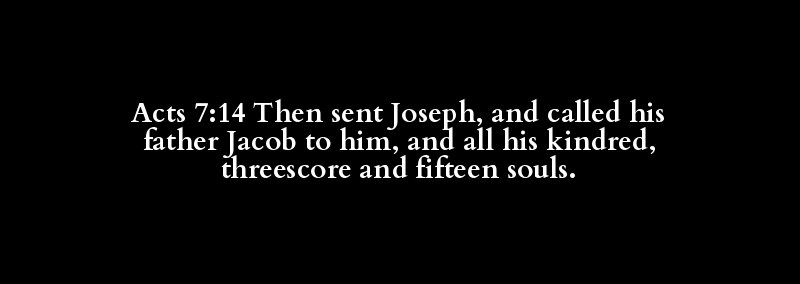 Acts 7:14 Then sent Joseph, and called his father Jacob to him, and all his kindred, threescore and fifteen souls.