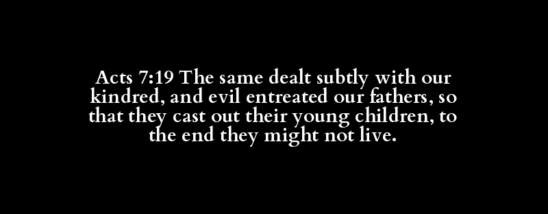 Acts 7:19 The same dealt subtly with our kindred, and evil entreated our fathers, so that they cast out their young children, to the end they might not live.