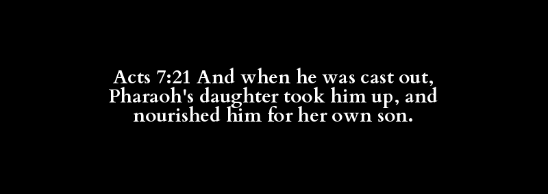 Acts 7:21 And when he was cast out, Pharaoh's daughter took him up, and nourished him for her own son.