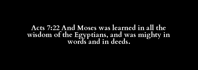 Acts 7:22 And Moses was learned in all the wisdom of the Egyptians, and was mighty in words and in deeds.