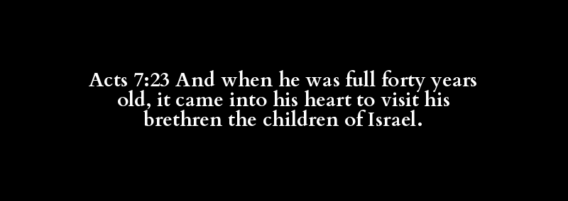 Acts 7:23 And when he was full forty years old, it came into his heart to visit his brethren the children of Israel.