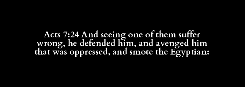Acts 7:24 And seeing one of them suffer wrong, he defended him, and avenged him that was oppressed, and smote the Egyptian: