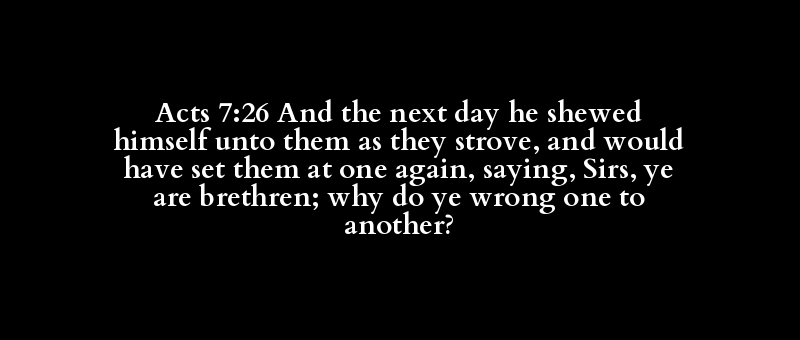 Acts 7:26 And the next day he shewed himself unto them as they strove, and would have set them at one again, saying, Sirs, ye are brethren; why do ye wrong one to another?