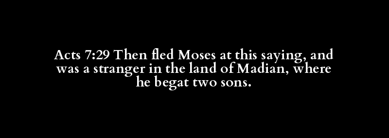 Acts 7:29 Then fled Moses at this saying, and was a stranger in the land of Madian, where he begat two sons.