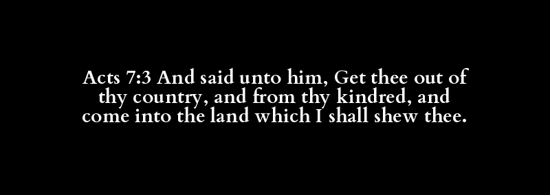 Acts 7:3 And said unto him, Get thee out of thy country, and from thy kindred, and come into the land which I shall shew thee.