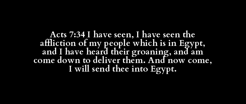Acts 7:34 I have seen, I have seen the affliction of my people which is in Egypt, and I have heard their groaning, and am come down to deliver them. And now come, I will send thee into Egypt.