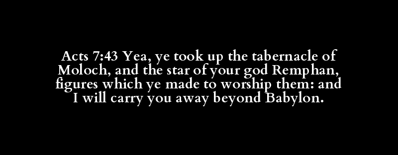 Acts 7:43 Yea, ye took up the tabernacle of Moloch, and the star of your god Remphan, figures which ye made to worship them: and I will carry you away beyond Babylon.