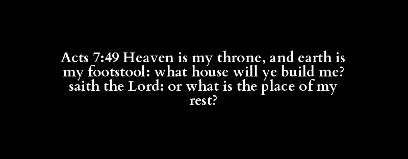 Acts 7:49 Heaven is my throne, and earth is my footstool: what house will ye build me? saith the Lord: or what is the place of my rest?