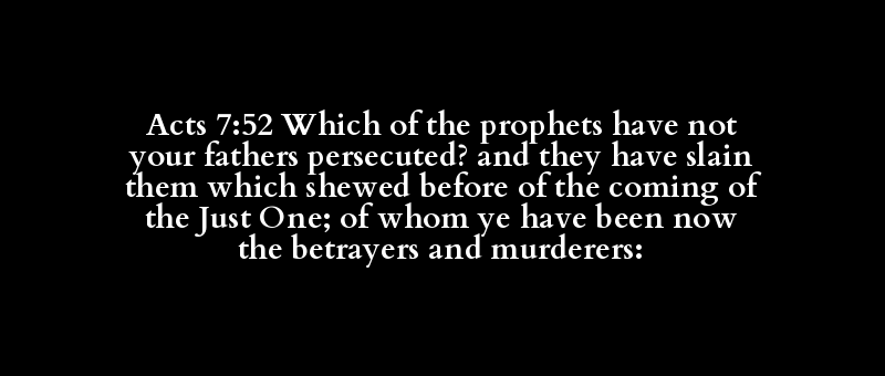 Acts 7:52 Which of the prophets have not your fathers persecuted? and they have slain them which shewed before of the coming of the Just One; of whom ye have been now the betrayers and murderers: