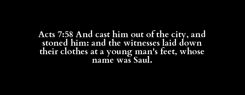 Acts 7:58 And cast him out of the city, and stoned him: and the witnesses laid down their clothes at a young man's feet, whose name was Saul.