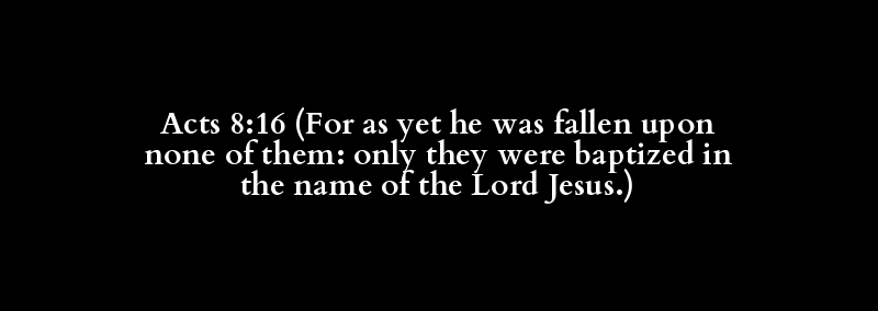 Acts 8:16 (For as yet he was fallen upon none of them: only they were baptized in the name of the Lord Jesus.)
