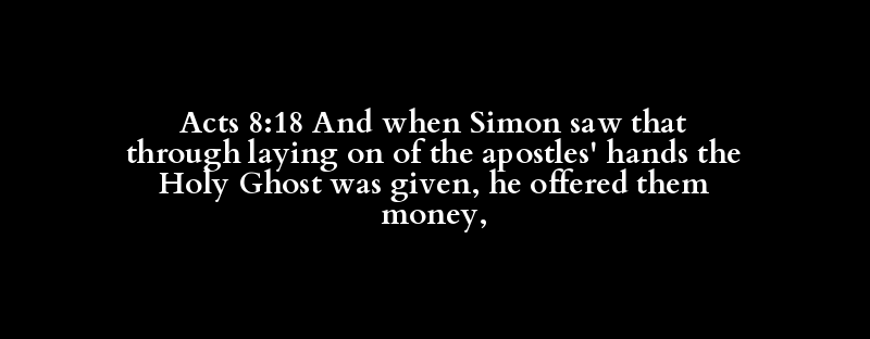 Acts 8:18 And when Simon saw that through laying on of the apostles' hands the Holy Ghost was given, he offered them money,