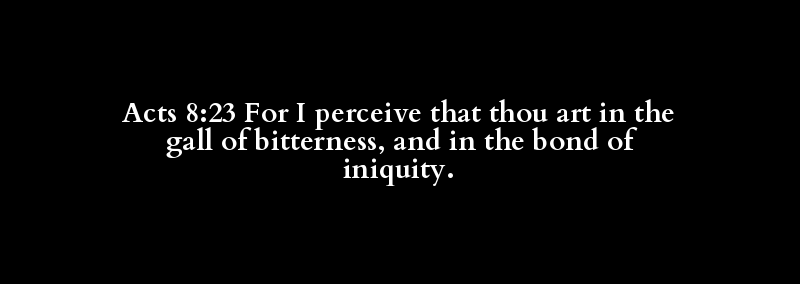 Acts 8:23 For I perceive that thou art in the gall of bitterness, and in the bond of iniquity.
