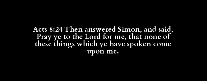 Acts 8:24 Then answered Simon, and said, Pray ye to the Lord for me, that none of these things which ye have spoken come upon me.