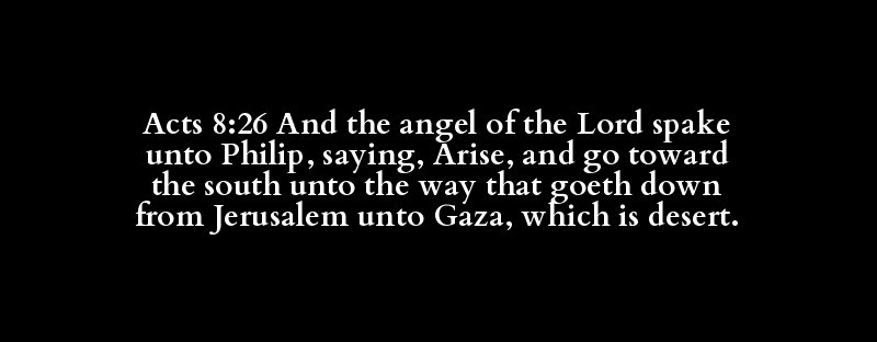 Acts 8:26 And the angel of the Lord spake unto Philip, saying, Arise, and go toward the south unto the way that goeth down from Jerusalem unto Gaza, which is desert.