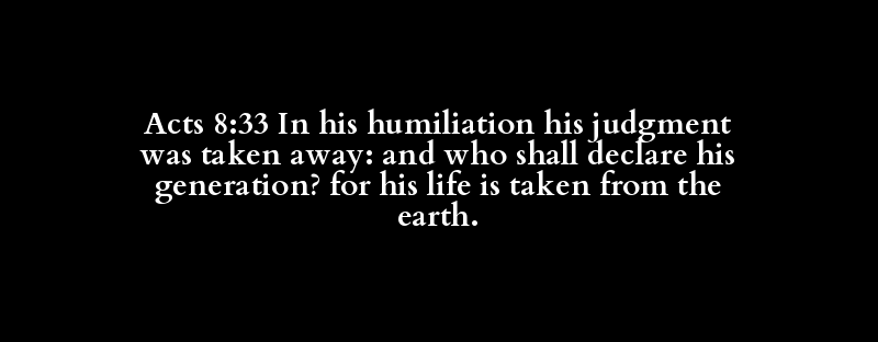 Acts 8:33 In his humiliation his judgment was taken away: and who shall declare his generation? for his life is taken from the earth.