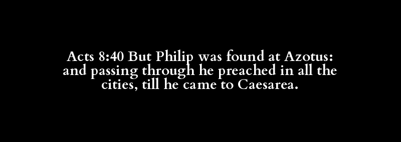 Acts 8:40 But Philip was found at Azotus: and passing through he preached in all the cities, till he came to Caesarea.