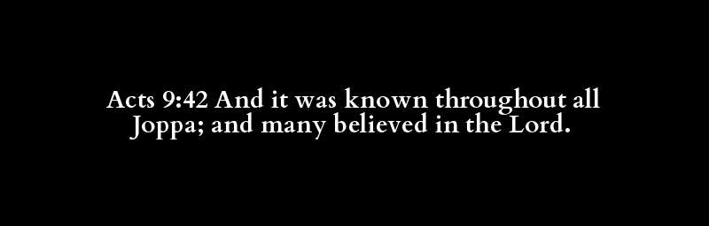 Acts 9:42 And it was known throughout all Joppa; and many believed in the Lord.
