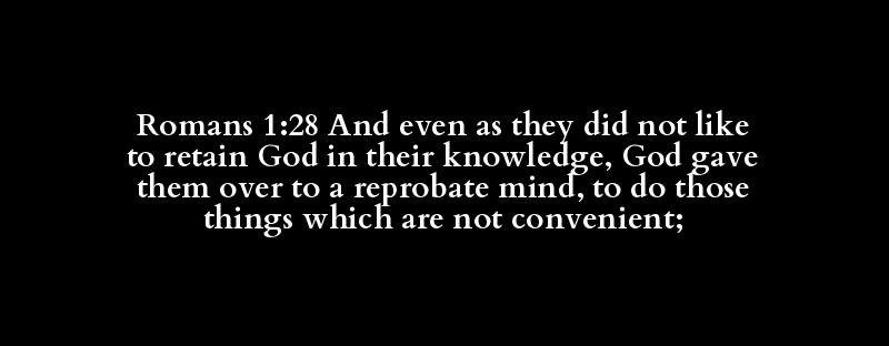 Romans 1:28 And even as they did not like to retain God in their knowledge, God gave them over to a reprobate mind, to do those things which are not convenient;