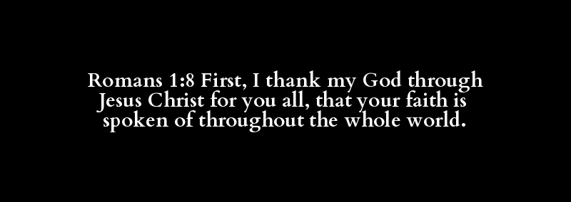 Romans 1:8 First, I thank my God through Jesus Christ for you all, that your faith is spoken of throughout the whole world.