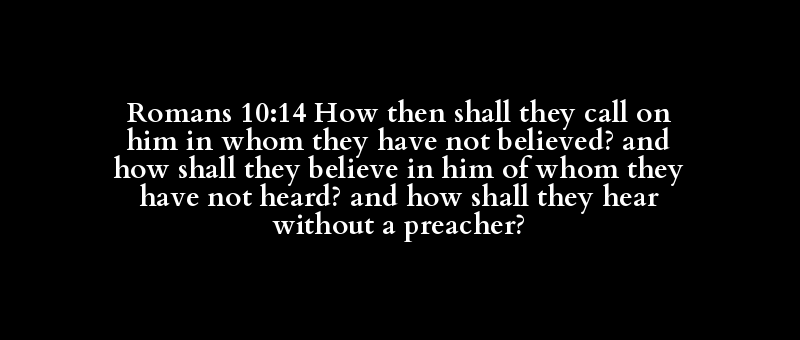 Romans 10:14 How then shall they call on him in whom they have not believed? and how shall they believe in him of whom they have not heard? and how shall they hear without a preacher?