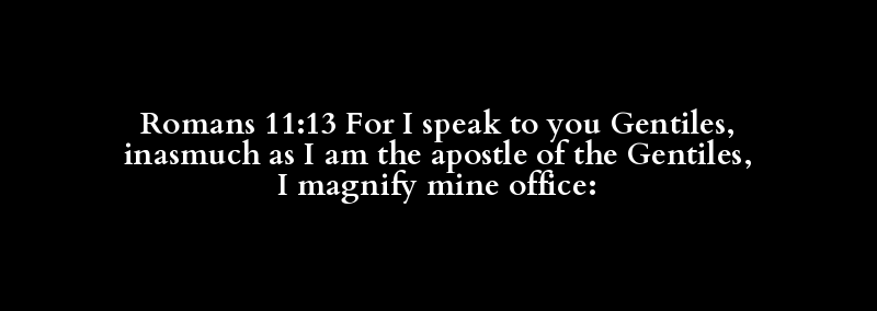 Romans 11:13 For I speak to you Gentiles, inasmuch as I am the apostle of the Gentiles, I magnify mine office: