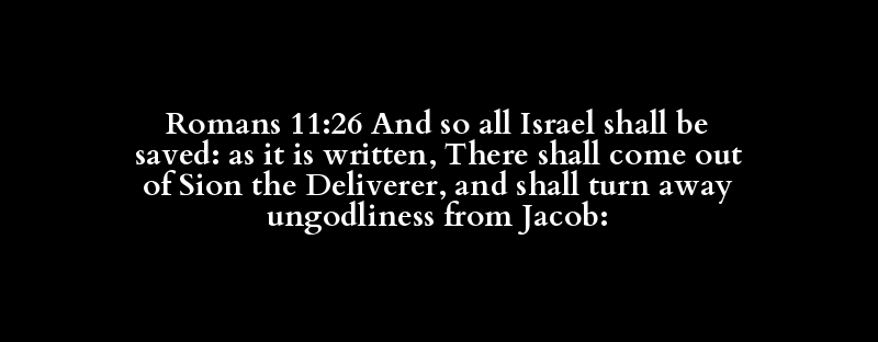 Romans 11:26 And so all Israel shall be saved: as it is written, There shall come out of Sion the Deliverer, and shall turn away ungodliness from Jacob: