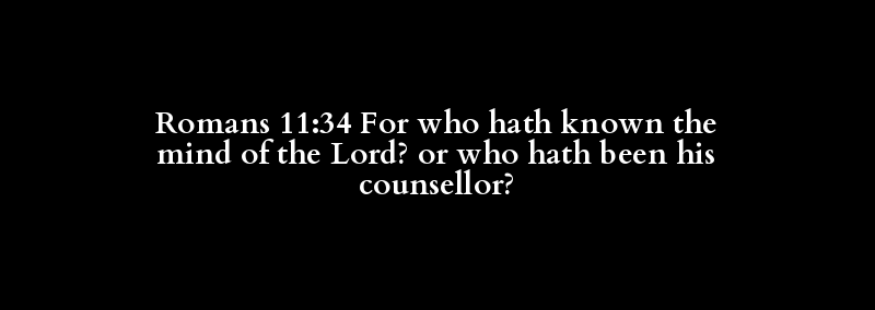 Romans 11:34 For who hath known the mind of the Lord? or who hath been his counsellor?