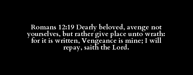Romans 12:19 Dearly beloved, avenge not yourselves, but rather give place unto wrath: for it is written, Vengeance is mine; I will repay, saith the Lord.